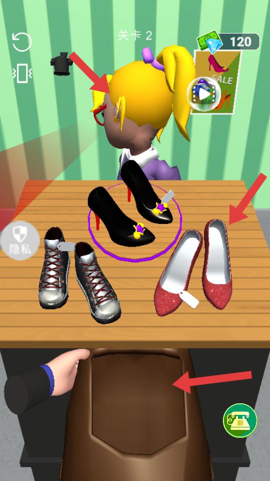 2、面對不同款式的鞋子,挑選合適的,與場景中的人物互動,完成鞋子相關的任務,推進關卡。