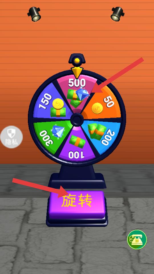 4、游戲中還有轉盤玩法,點擊旋轉按鈕,轉動轉盤,有機會獲得鉆石,金幣等獎勵,助力游戲進程。