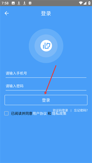 1、登錄界面,支持手機號密碼登錄,需同意用戶協議和隱私政策,登錄后可使用APP的門禁管理功能。
