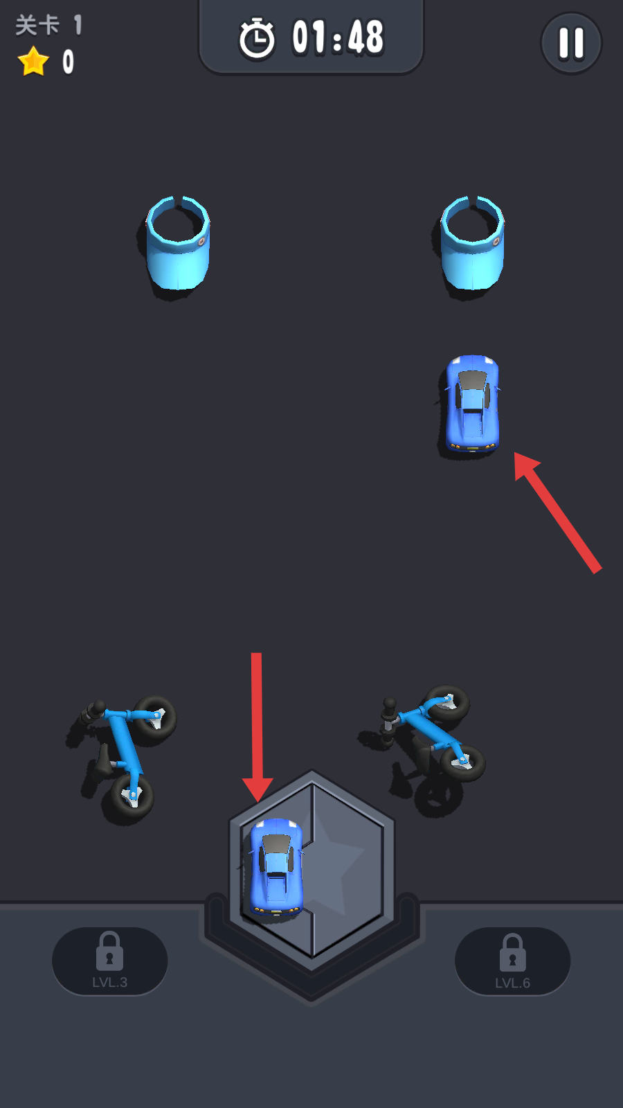 3、持續移動不同的物品,像藍色汽車等,將它們準確放到指定位置,不斷推進物品配對的進度。