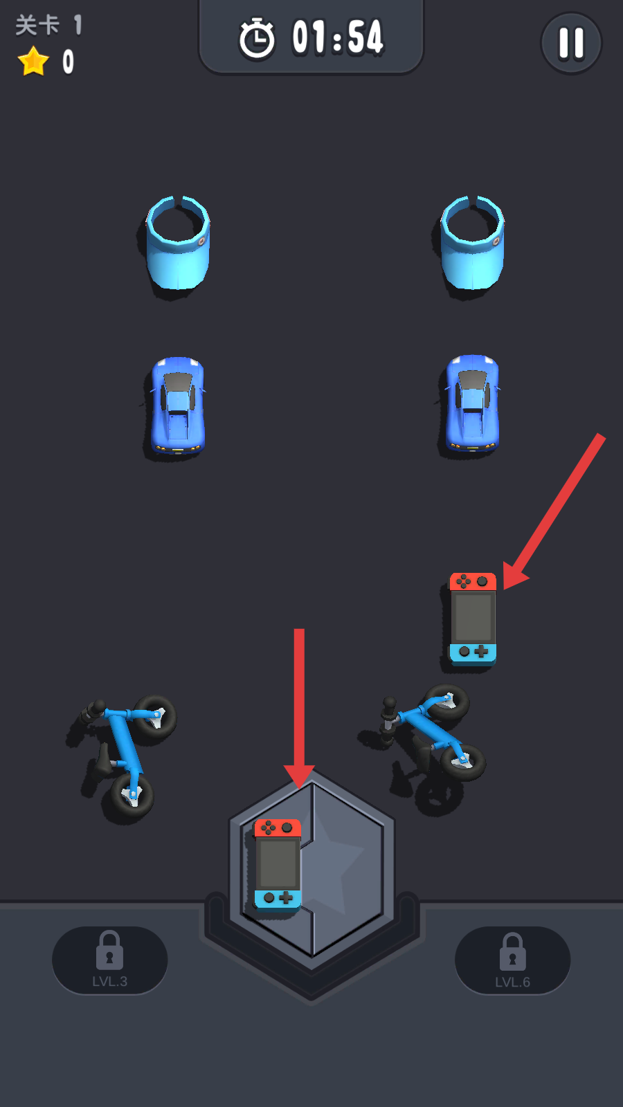 2、進入關卡后,能看到多種物品,需要將這些物品移動到下方對應的六邊形區域內,逐步完成物品配對。