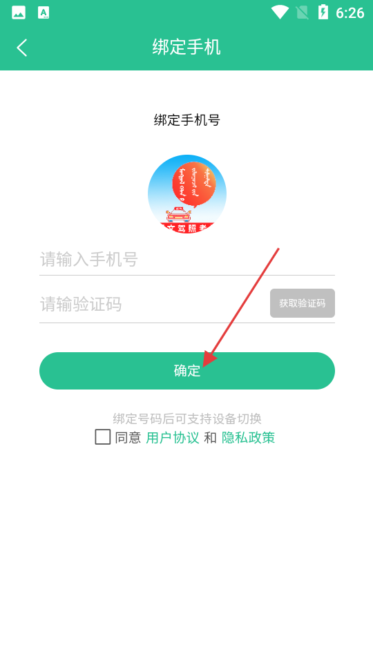 3、點擊綁定手機號按鈕后,進入綁定手機頁面,在這個頁面輸入手機號碼,然后點擊獲取驗證碼按鈕,輸入驗證碼后點擊確定按鈕即可完成注冊。