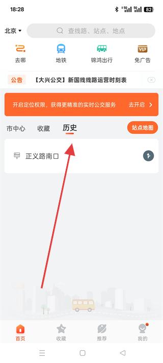 1、打開軟件進入首頁可查看歷史查詢記錄,如正義路南口等,點擊歷史記錄可快速查看之前的查詢路線。