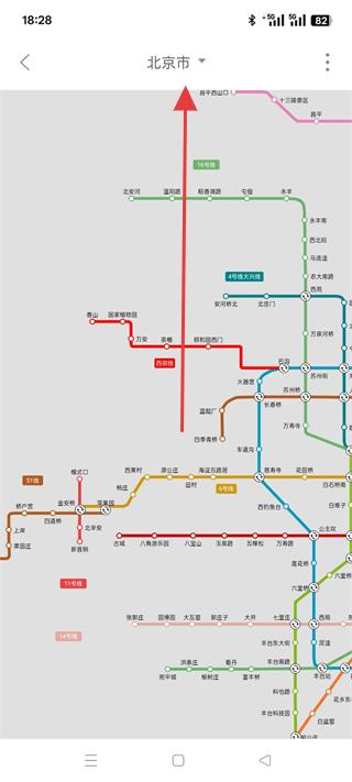 3、進入地鐵板塊可查看北京市的地鐵線路圖,了解各條地鐵線路的走向和站點分布,規劃地鐵出行路線。