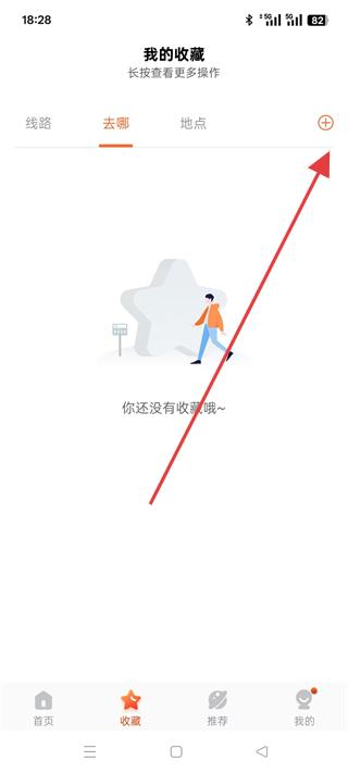 4、進入收藏板塊可點擊加號按鈕,添加線路、去哪、地點等收藏內容,方便后續快速查看和使用收藏的交通信息,提升出行查詢的效率。