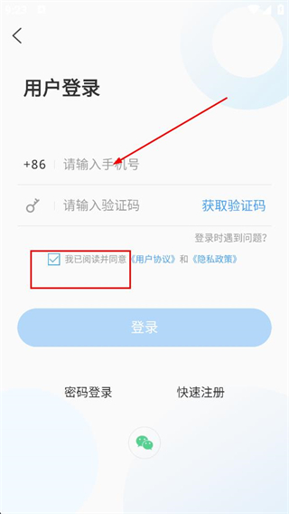 1、進入用戶登錄頁,在手機號欄填寫號碼,點擊獲取驗證碼,填入驗證碼后勾選已閱讀并同意協議,點擊登錄按鈕完成賬號登錄。