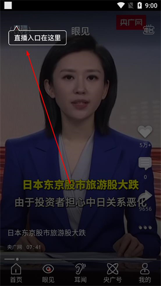 2、切換至眼見板,找到直播入口,點擊進入直播頁面,觀看正在播放的內容,查看相關話題的互動數據,了解內容對應的事件背景。