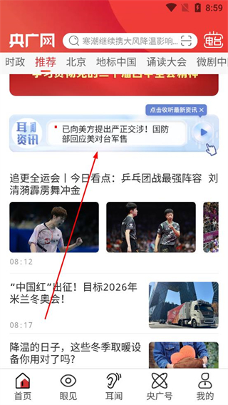 1、打開央廣網首頁瀏覽推薦板塊的資訊內容,查看各類新聞條目,點擊感興趣的資訊,進入詳情頁了解具體信息,還可收聽新聞播報音頻。