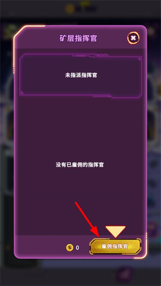 3、當礦層升級到5級后解鎖指揮官系統,進入礦層指揮官界面,可消耗金幣點擊雇傭指揮官按鈕,雇傭后指派指揮官助力采礦進程。