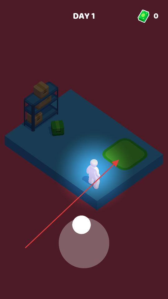 1、操控白色小人移動,前往綠色區域,此時留意倉庫內的貨架和物品位置,為后續取放物品做準備。