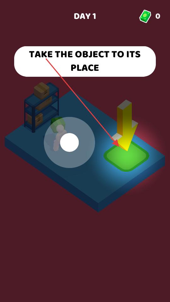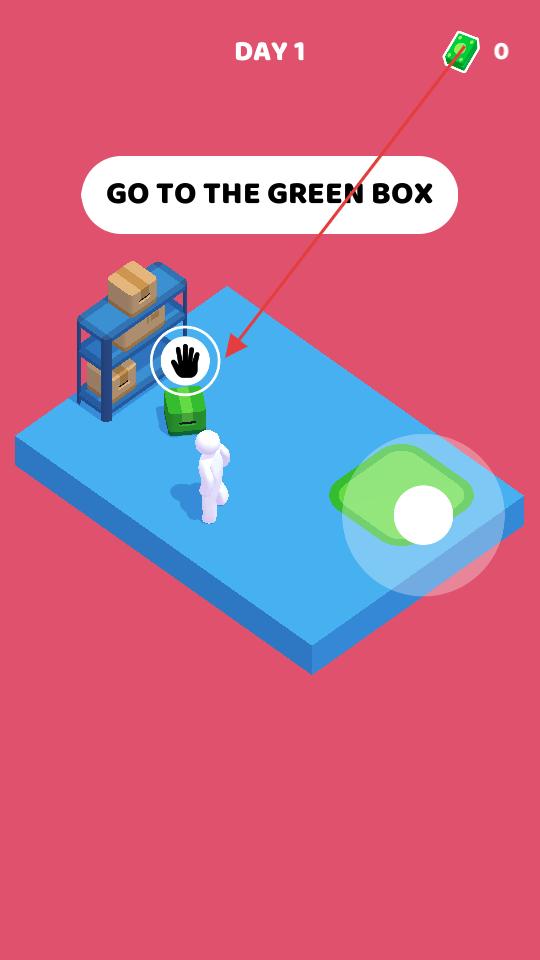 3、獲取綠色箱子里的物品后,操控白色小人帶著物品移動,前往指定的綠色放置區域。