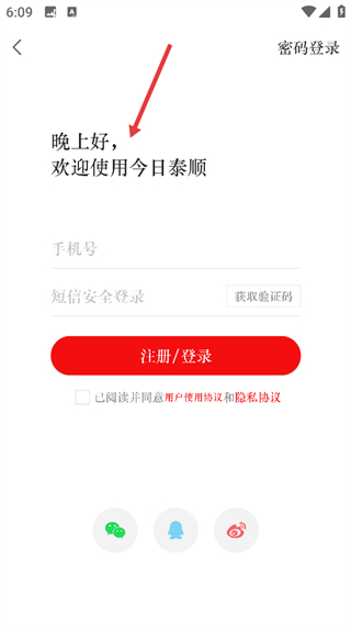 1、進入登錄板塊可選短信安全登錄或第三方登錄,填寫手機號獲取驗證碼并同意協議,登錄同時完成注冊,開啟平臺服務。