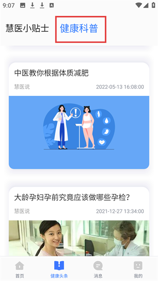 3、健康科普,涵蓋中醫體質減肥、大齡孕婦孕檢等科普內容,通過專業科普幫助用戶了解健康知識。