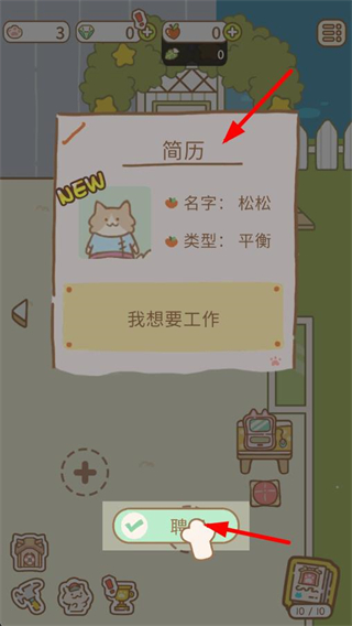 3、招募時會彈出簡歷界面,顯示應聘者的名字類型等信息,確認后點擊聘按鈕,就能完成員工的錄用,補充水療館的人力。