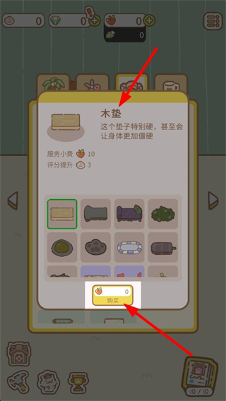1、查看木墊的介紹,當資源足夠時點擊購買按鈕,就能獲取這個物品來裝飾水療館。