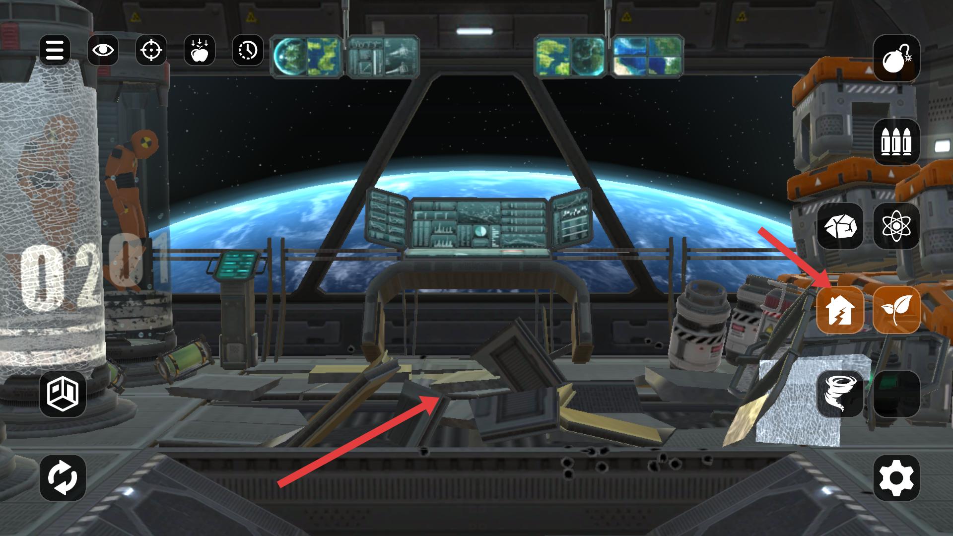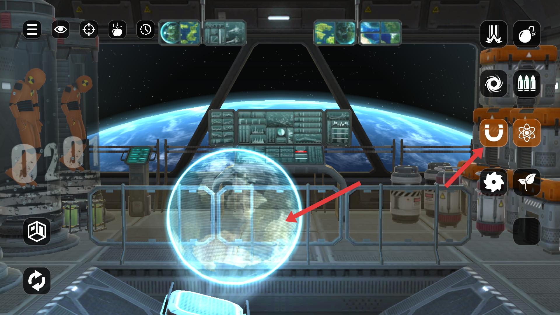 2、在太空艙場景,利用右側的磁鐵類道具,吸附場景中的物品,改變物體位置,為后續破壞或操作創造條件。