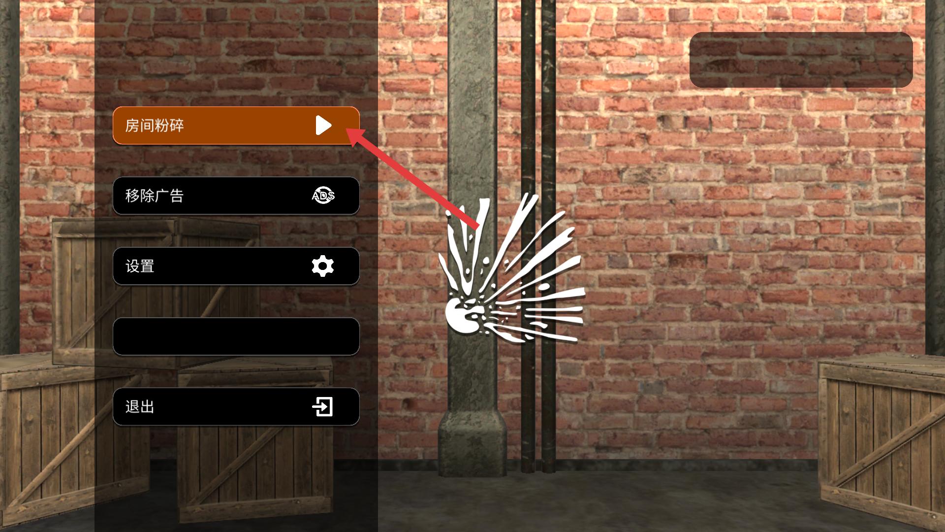 1、點擊房間粉碎,進入游戲核心玩法,在充滿磚塊和木箱的場景,開啟破壞房間的挑戰,體驗粉碎的樂趣。