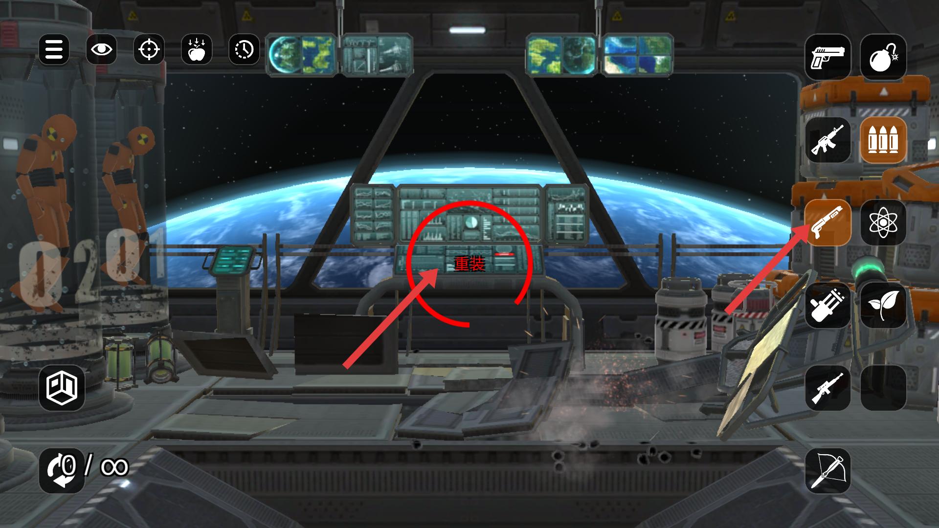 3、選擇合適的槍械道具,瞄準太空艙內的目標區域,進行射擊,通過重裝等操作,持續對場景造成破壞,推進游戲進程。
