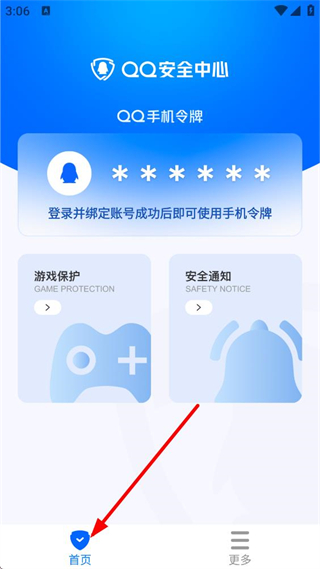 1、進入首頁,可使用QQ手機令牌,享受游戲保護、安全通知等服務,登錄并綁定賬號后即可使用手機令牌,保障QQ賬號安全。