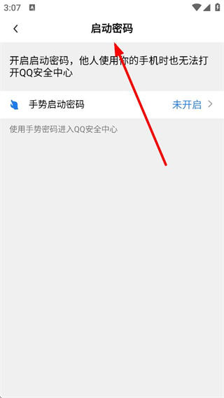 4、進入啟動密碼界面,可開啟手勢啟動密碼,他人使用手機時無法打開QQ安全中心,提升QQ安全中心的使用安全性。