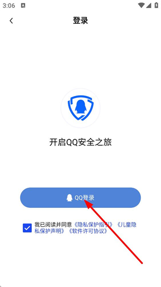 3、選擇QQ登錄,需勾選同意相關協議,開啟QQ安全之旅,方便用戶快速登錄并使用QQ安全中心的各項功能。
