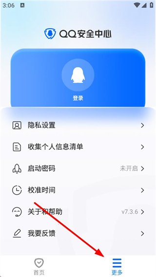 2、點擊更多,可進行隱私設置,查看收集個人信息清單,設置啟動密碼、校準時間,了解關于和幫助信息,還可反饋問題,滿足用戶個性化安全設置需求。