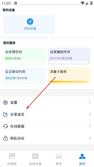 3、進入我的頁面查看云存儲空間遠程播放時間等服務信息,點擊設置選項,可進行設備相關的配置。