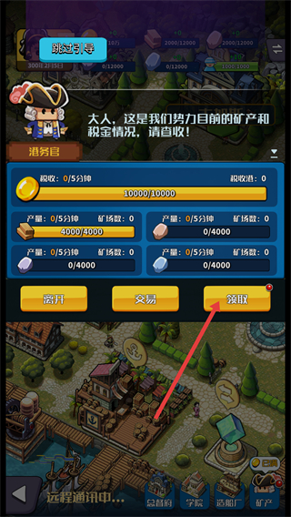 4、在礦產界面可查看勢力的礦產和稅金情況,點擊領取按鈕獲取資源,發展勢力經濟。