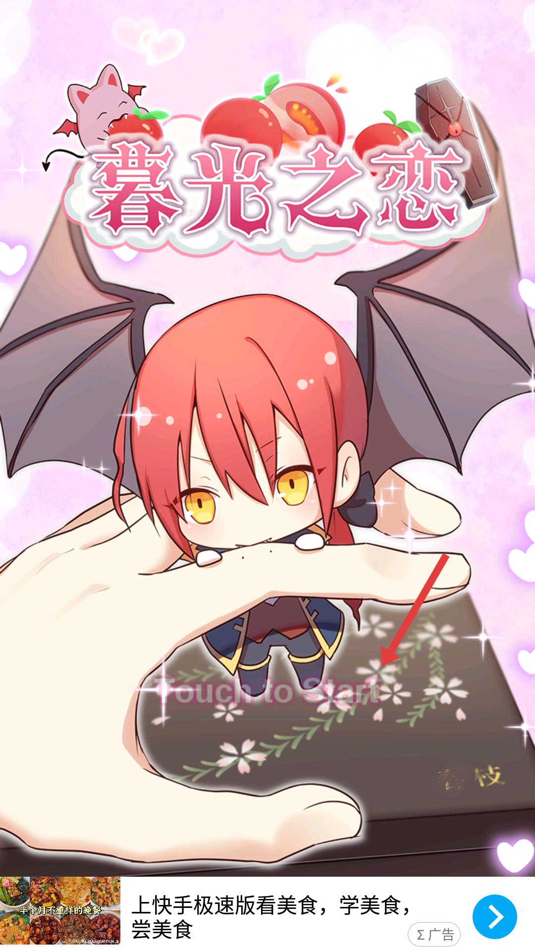 1、游戲初始界面,點擊箭頭所指位置,可進入游戲劇情環節,開啟與主角相知相戀的故事之旅,開始體驗游戲的劇情內容。