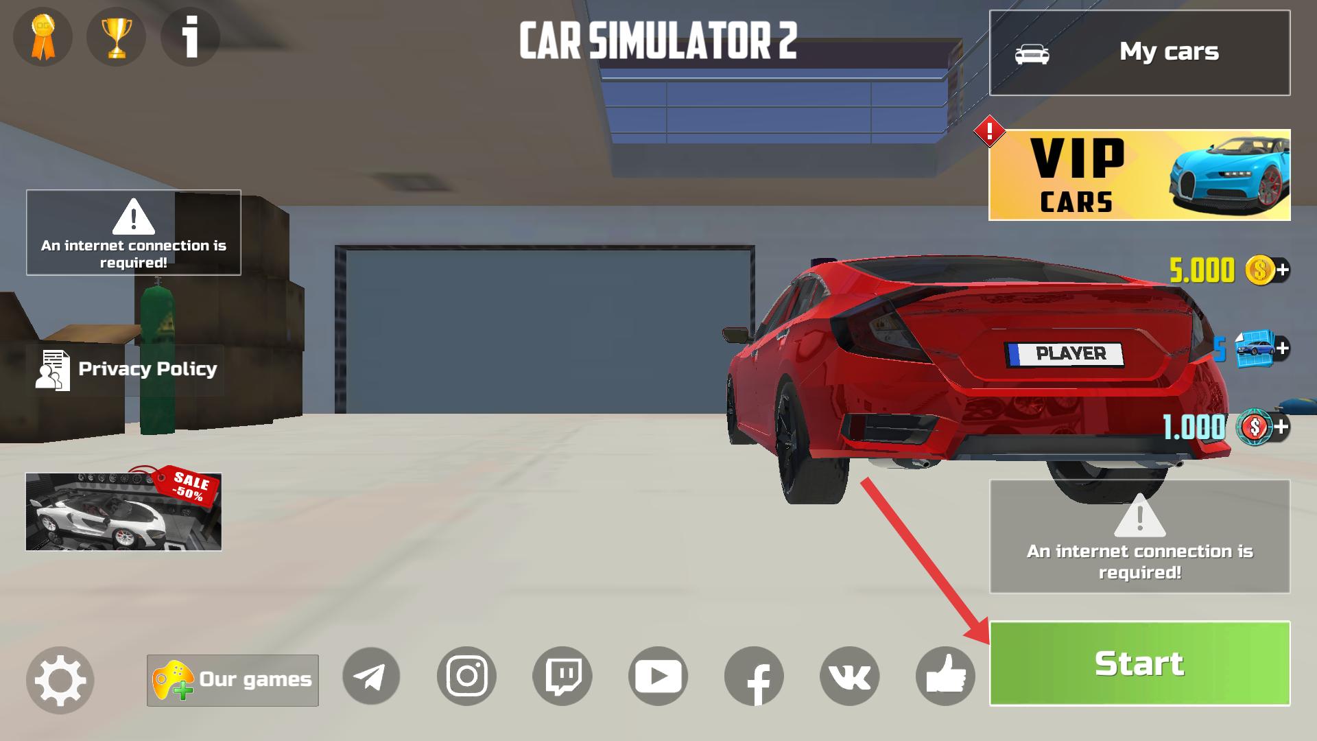 1、點擊Start,進入游戲場景,可選擇車輛,開啟汽車模擬駕駛體驗,感受真實駕駛樂趣。