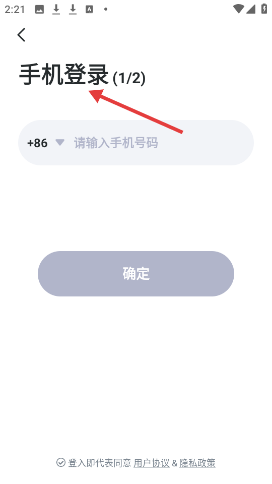 3、直播手機登錄界面明確標注手機登錄1/2,界面簡潔,主要引導用戶輸入手機號碼以繼續登錄流程。