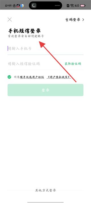 1、進入登錄頁面可選擇手機短信登錄,輸入手機號和短信驗證碼,勾選同意用戶協議后點擊登錄。