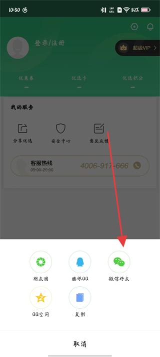4、在軟件內找到分享功能入口點擊后可選擇分享到朋友圈、騰訊QQ、微信好友等多個平臺,也可選擇分享到QQ空間或復制鏈接。