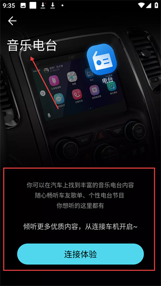4、音樂電臺頁,車機有豐富音樂電臺內容,可聽車友歌單、個性節目,點擊連接體驗即可。