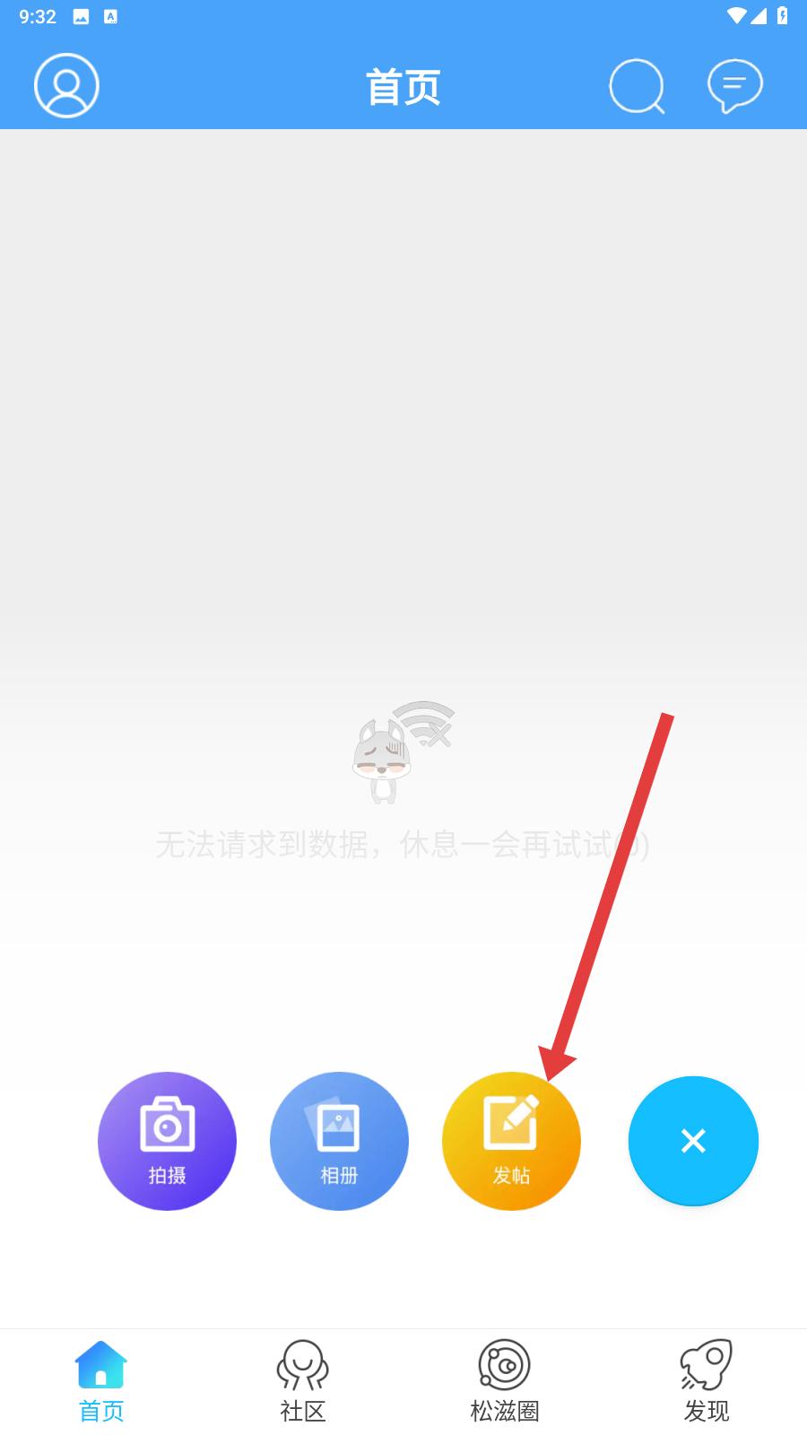 3、然后在這里跟隨著箭頭的指示,將視線移動到箭頭所指的地方,點擊發帖即可進行發帖。