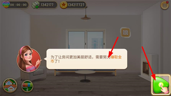 4、完成沙發裝扮后,點擊對應按鈕繼續推進,后續需努力賺取金幣,解鎖更多家居物品讓房間更舒適美觀。