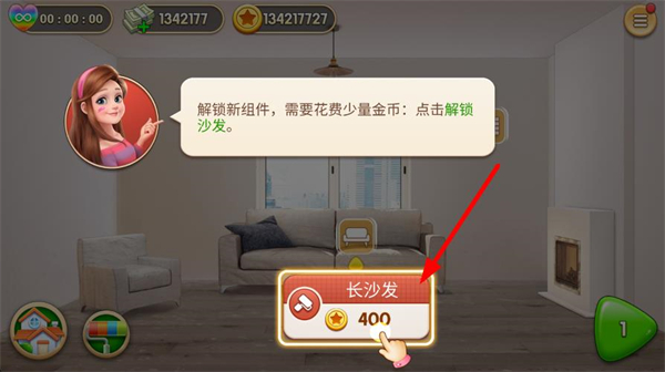 2、解鎖新的沙發組件需要花費金幣,點擊解鎖沙發的選項,消耗對應金幣獲取新組件,豐富可裝扮的家居物品。
