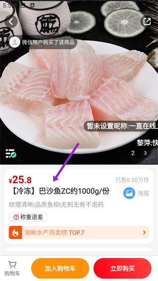 3、巴沙魚商品頁展示價格銷量與賣點,標注熱賣榜排名,提供加購購買功能,是單品詳情頁。