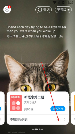 2、回到首頁找到新概念第二冊的學習入口,點擊進入學習按鈕,進入對應的課程學習頁面。