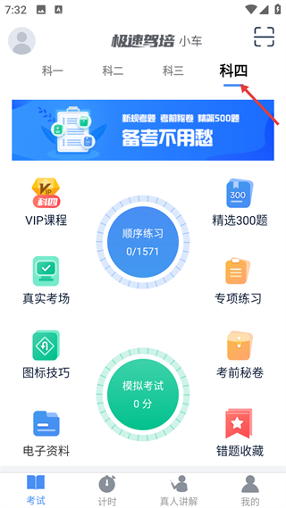 4、科四頁,提供順序練習等刷題功能,含1571道題,適配理論考試需求,通過專項練習提升應試能力。
