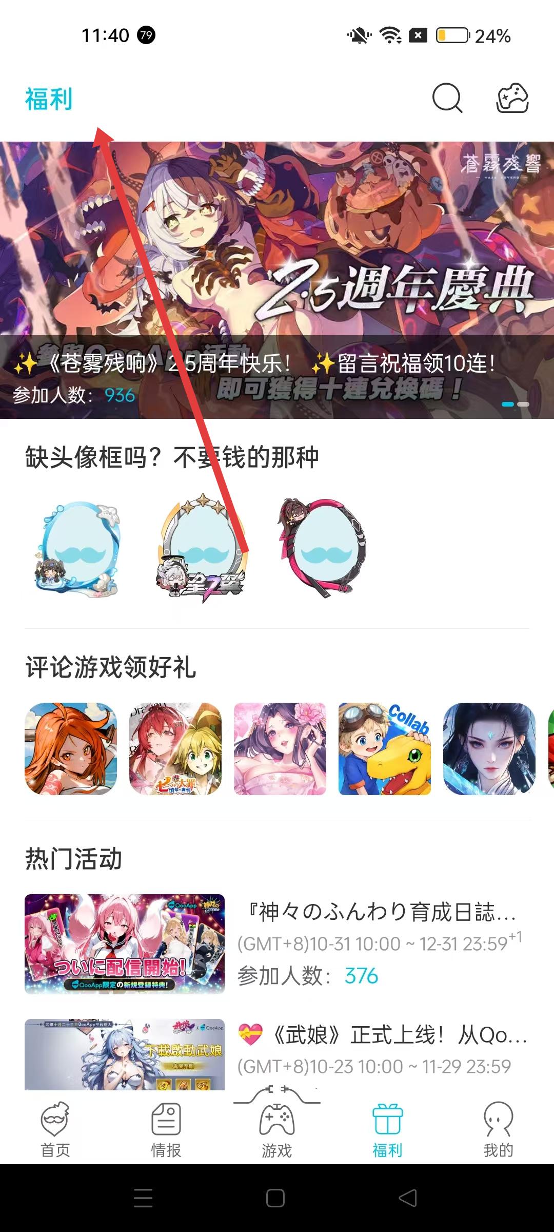3、進入福利板塊,可參與游戲活動領取福利,如頭像框、游戲禮包等,還有熱門活動可參與,獲取游戲獎勵。