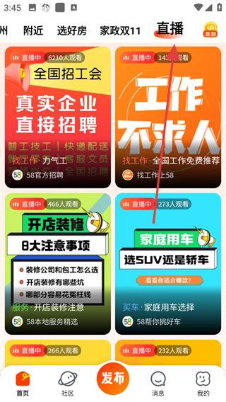 1、進入首頁可瀏覽直播板塊的各類直播內容如全國招工會等,選擇感興趣的直播,點擊進入直播頁面,觀看直播內容。
