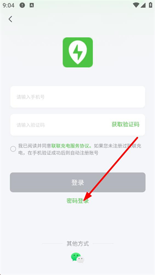 4、切換到密碼登錄界面,需輸入手機號和密碼,同樣勾選協議后點擊登錄,也可選擇其他方式比如微信來完成登錄操作繼續后續流程。