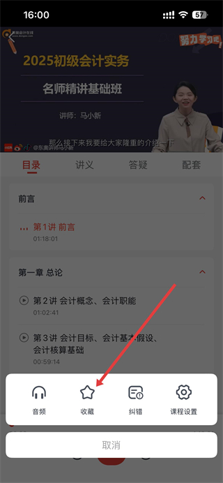 4、學習課程時可使用音頻收藏等功能,還能調整課程設置,通過便捷操作優化學習體驗,輔助更高效地吸收課程知識。
