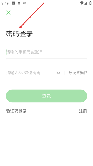 1、密碼登錄頁,支持手機號賬號加密碼登錄,提供驗證碼登錄、注冊選項,是使用APP服務的前置操作。