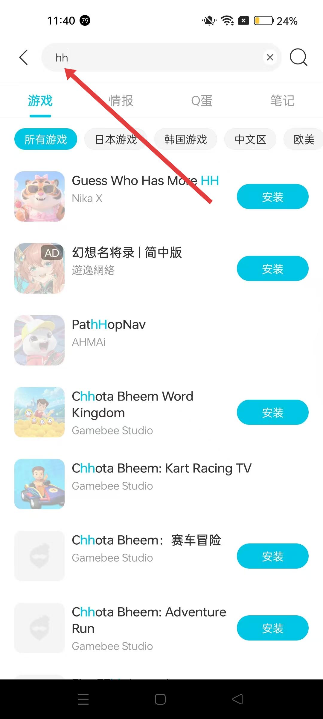 3、搜索欄輸入關鍵詞后,會顯示相關游戲結果,可看到游戲名稱、開發商及安裝按鈕,便于快速找到并安裝游戲。