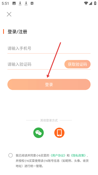 1、登錄頁支持手機號驗證碼登錄,還有微信、手機其他登錄方式,需同意用戶協議,隱私政策。
