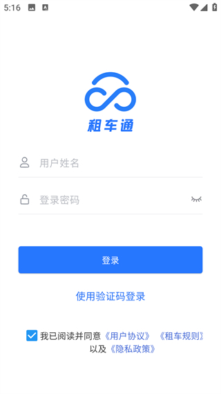 3、若選擇驗證碼登錄輸入手機號,獲取并輸入驗證碼,點擊登錄完成賬號登錄操作方便快捷地進入租車系統。