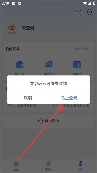 1、進入中食云創app,點擊立即登錄,在登錄提示框中選擇馬上登錄,完成賬號登錄流程。