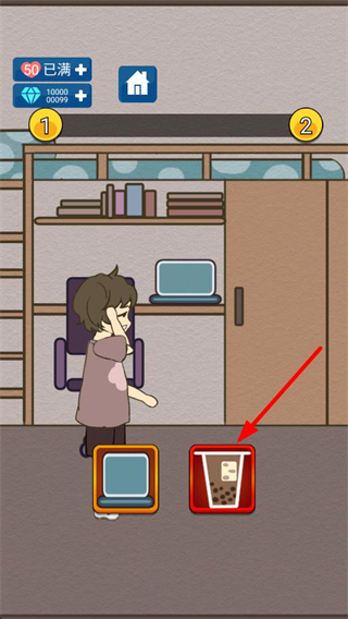 2、在關卡場景里選擇對應的物品,比如奶茶,通過選擇物品來推進劇情,完成當前場景的互動任務。
